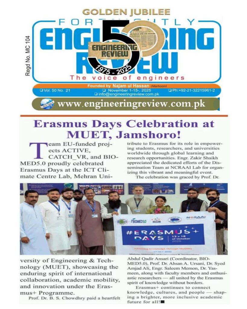 Featured in Engineering Review Magazine, the EU-funded CATCH_VR project recently hosted an awareness session at Government Boys Higher Secondary School (GBHSS) Muhammad Bux Shoro. Led by Volunteering Ambassador Anza Arain and a dedicated team from Mehran University, the session introduced students to the transformative power of Digital Twins, Augmented Reality, and Virtual Reality. Through interactive […]