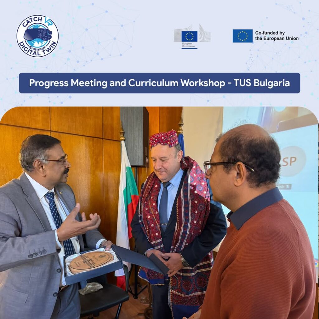 Leading Pakistani universities, including Mehran University of Engineering and Technology (MUET), Ghulam Ishaq Khan Institute (GIKI), QUEST Nawabshah, and University of Engineering and Technology Peshawar (UETP), participated in a four-day progress meeting and curriculum workshop as part of the EU-funded (CBHE) CATCH_VR project. The event was hosted by the Technical University of Sofia (TUS), Bulgaria, from November 6th to November 8th, 2024.